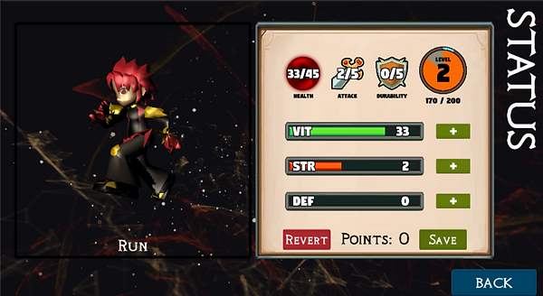 The main attributes are Vitality(VIT), Strength (STR) and Defense (DEF).